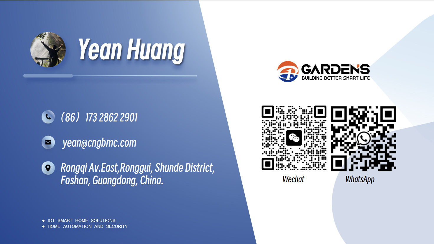 GBMC专门提供各种智能家居设备和一站式智能家居设备在线商店以及谷仓门硬件和建筑玻璃。我们致力于为建筑、装饰、酒店家居自动设备等提供先进的智能解决方案。 GBMC认为,唯一的竞争力来自先进的技术。我们一直致力于先进制造技术的研究和开发。 我们的质量水平已经提高到更高的水平。同时,我们加强与全国合作伙伴的合作。如今,园林建筑在智能产业中发挥着越来越重要的作用。我们可以提供一系列全面的产品,包括智能窗帘、智能开关、智能百叶窗、智能窗帘轨道配件、管状电机、PDLC薄膜等。 我们由经验丰富的销售专业人员组成的专业团队提供必要的支持和售后服务,以确保及时有效地满足所有客户要求。 我们的产品已出口到美国,加拿大,巴西,英国,西班牙,挪威,阿联酋,斯里兰卡,孟加拉国等国家和地区。 我们的目标是专业、信誉和最佳质量。 我们欢迎所有客户前来建立顺利的业务关系!