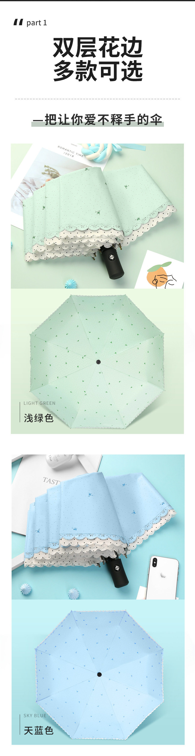 可定制彩色图案在伞面上(300起做)