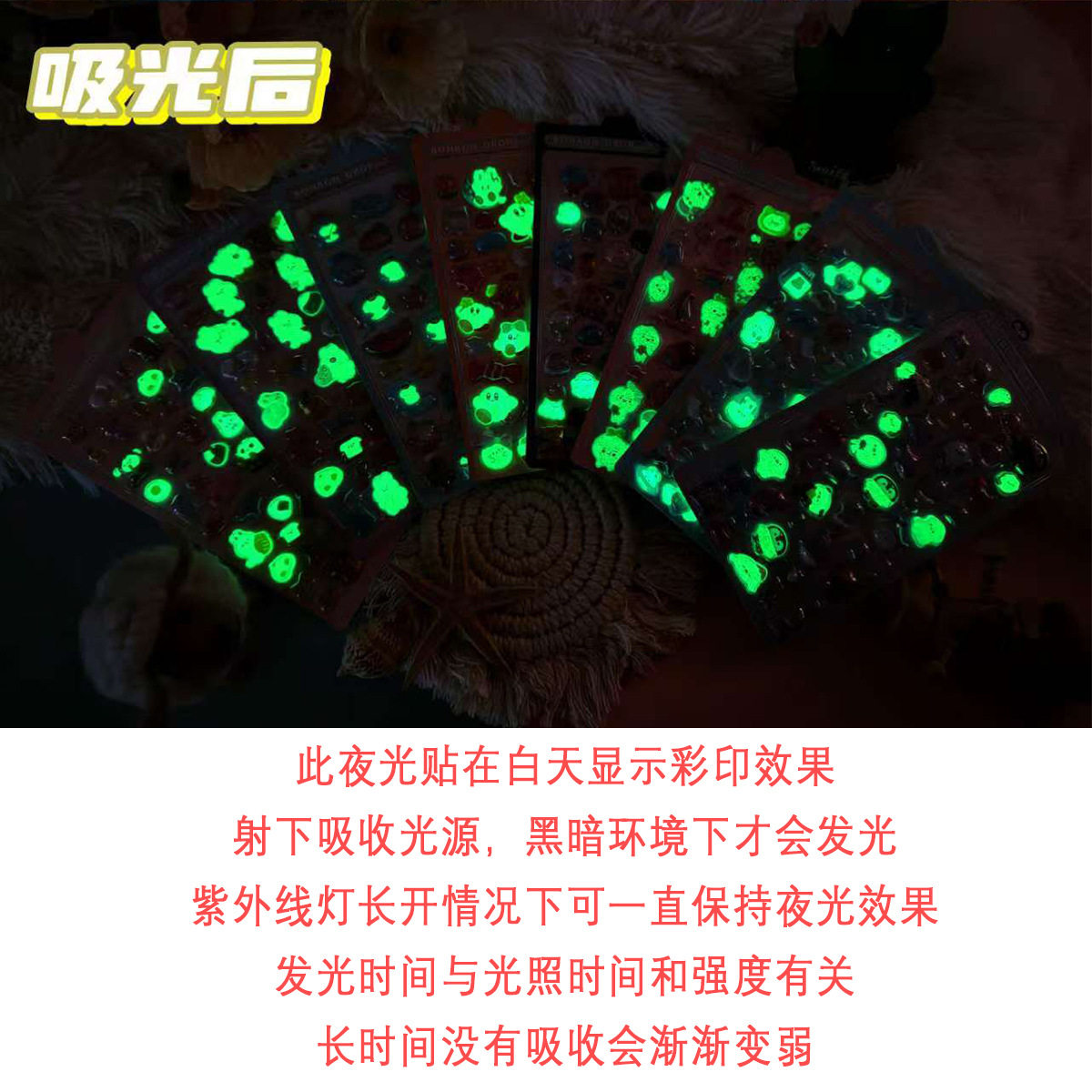 每袋约9.5*20cm,内含1张浮雕9.5*17.5cm夜光贴,背卡烫银
