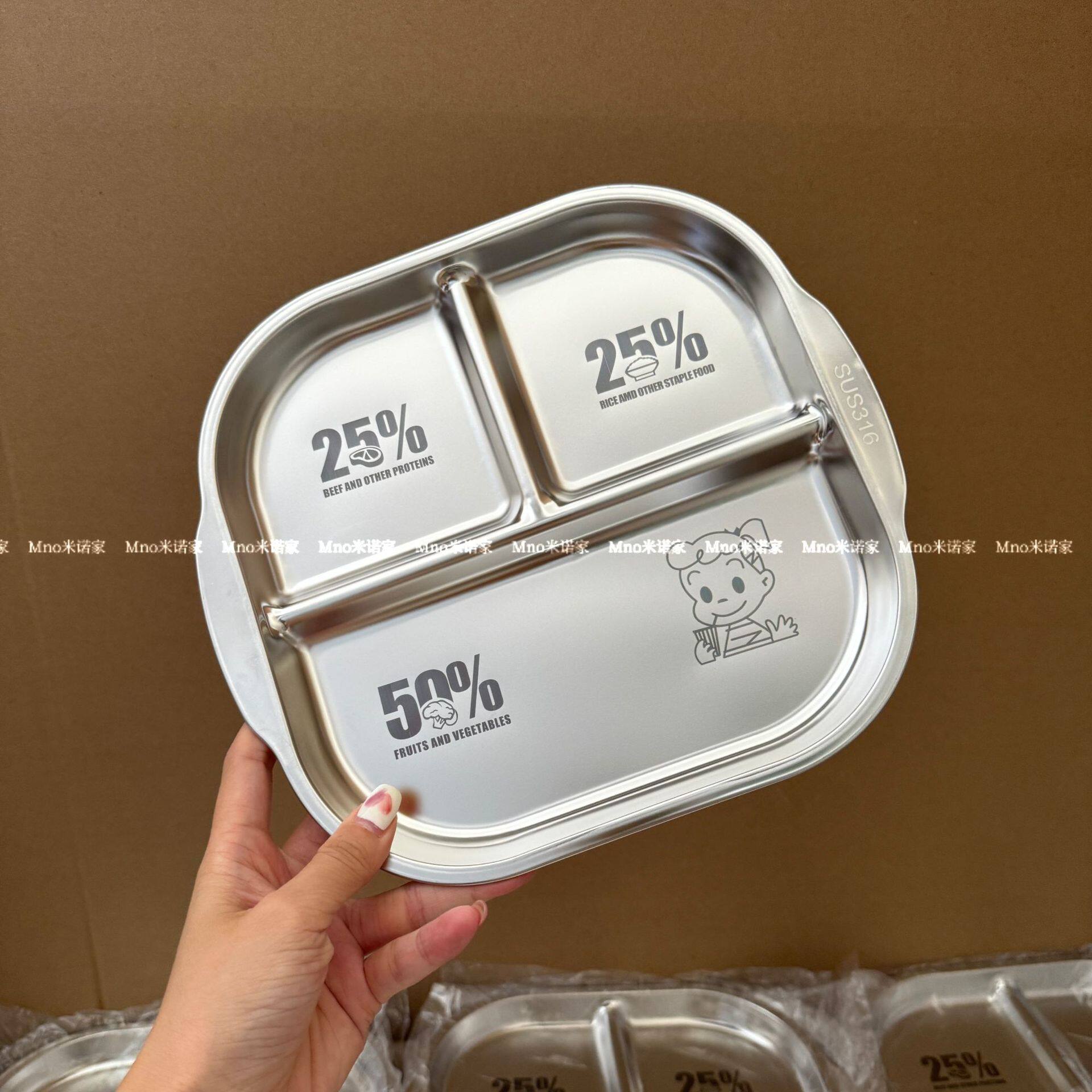 米诺家304钢餐盘减脂分格餐盘分餐盘学生