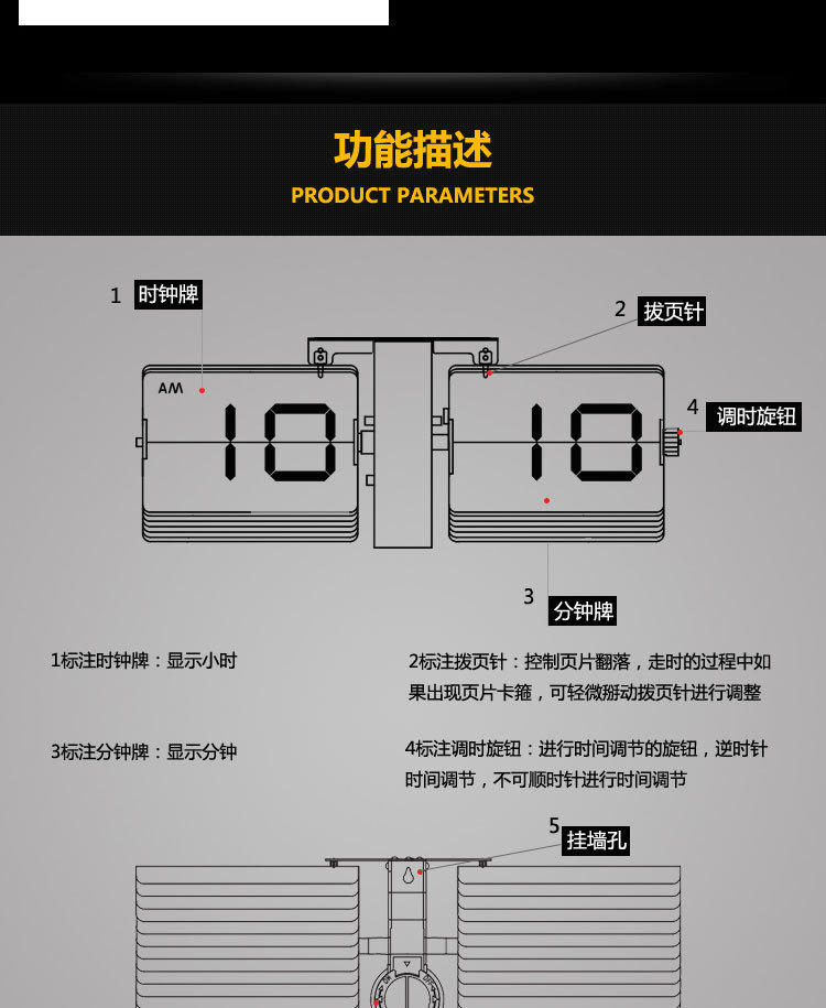 | 名称 | 大号自动翻页钟 | 型号 | HY-F018 |