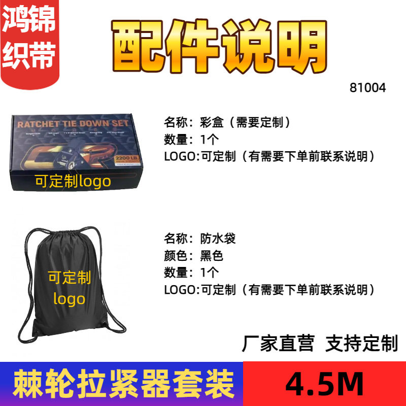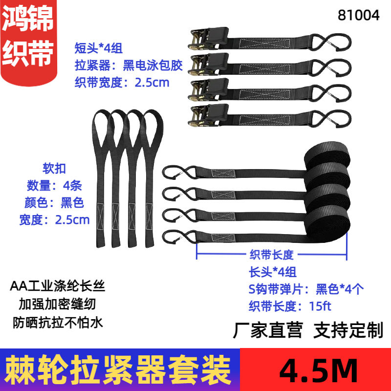 名称:棘轮收紧器25mm摩托车绑带4.5米货物运输捆绑带捆绑器拉紧器