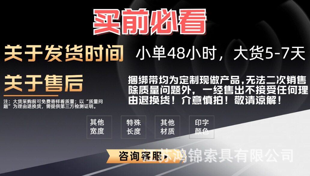 织带材质:AA工业涤纶长丝 (防晒抗拉不怕水)