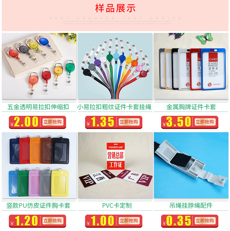 本公司成立于2016年5月,目前主要经营证件卡套、挂绳、易拉扣等展示类相关产品的批发和定制。