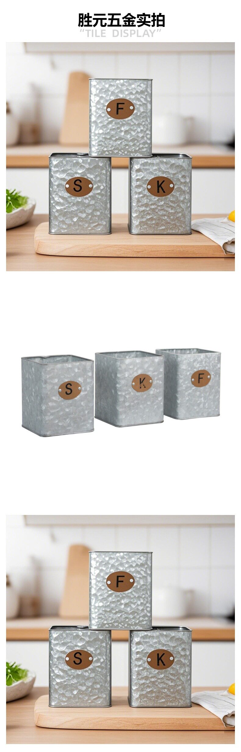 金属套装方形罐子 镀锌铁厨房储物罐 原色收纳罐 家用储存罐
